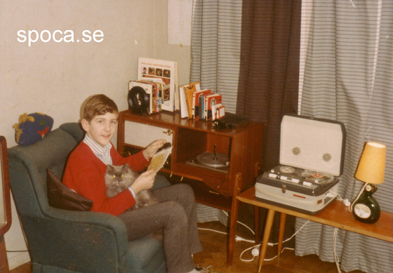 - Femtonåringen uppflugen i bästa stolen, året är 1967 och här finns alla moderniteter en grabb kan önska sig. Radio med grammofon och Philips rullbandspelare, skivsamlingen och banden står på radiogrammofonen. Längst till höger ser vi den tuffa lampan som är tillverkad av en vinflaska.