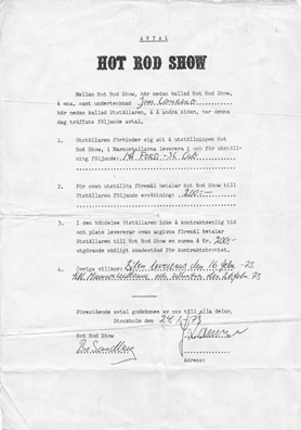 Jan hade bilen på sin firma Stjärnebergs Bilar i Linköping, antingen var det Bo "Gamen" Sandberg eller brorsan Sven Sandberg som en dag dyker upp, ryktet gick att det fanns en fin Ford 36:a Cabriolet i Linköping. Jan öppnar garaget och rullar ut bilen. - Oj då, ska du inte vara med på Hot Rod Show med bilen? - Nää det har jag aldrig tänkt på. Men så blev det och den 24 januari kommer Bo ner med kontraktet som skrivs under.