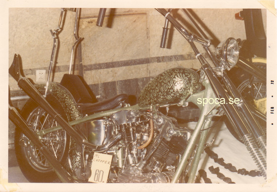 - Harley-Davidson Knucklehead Chopper på Hot Rod Show 1972. Jag vet inte vem ägaren var, man fotade det som fanns och var kul.