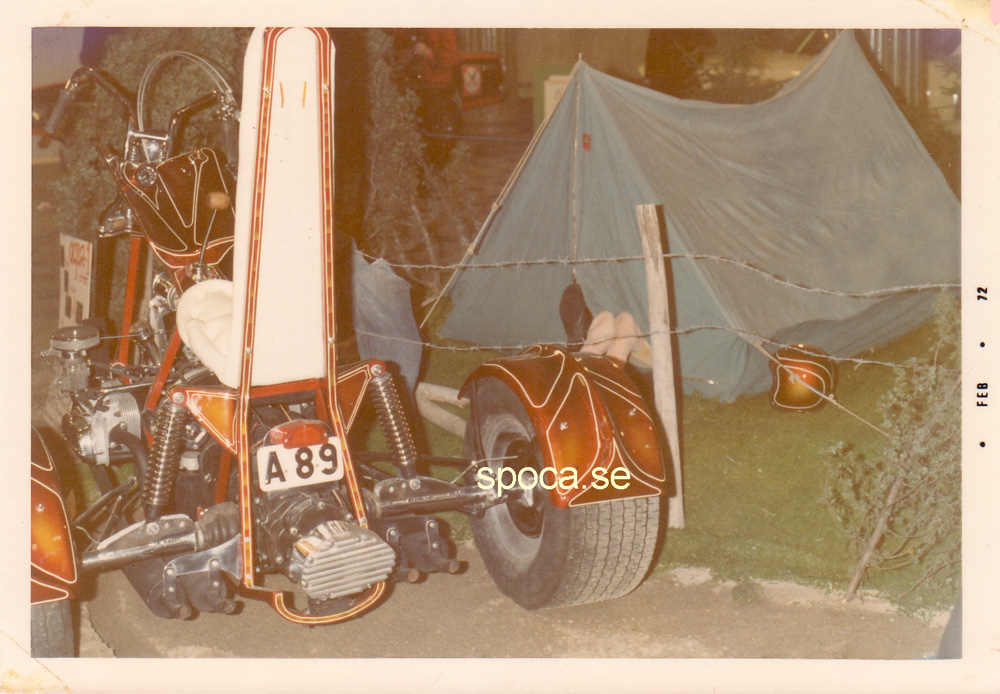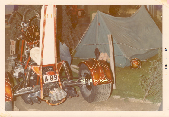 - Anders Lake ställer ut sin fina Trike på Hot Rod Show 1972, med vinge tank. Det var populärt att bygga Trikar på 1970- talet och de gick att besikta.