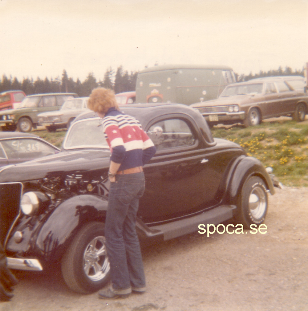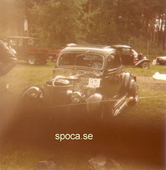 - Ford 1936 tre fönsters coupe, gammal Stockcar bil som vi var och tittade på så många gånger och trodde, den är nog inte så dålig. Vi hittade en liten bit bakom bakrutan på någon kvadrat decimeter som inte var bucklig. Senare var det någon som köpte bilen och skulle göra i ordning den. Forden var 20 centimeter högre än den skulle vara, den var ju smälld på bägge. Dessutom var den full med järnvägsräls inuti som skydd. Hade varit kul att ha idag och åkt omkring i.