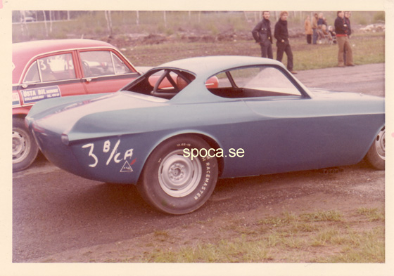 - Mantorp 1972, en tidig Funny Car med Volvo P1800 kaross. Åskådare i bakgrunden, notera klädseln, de utsvängda brallorna, det är så typiskt 1970- tal.