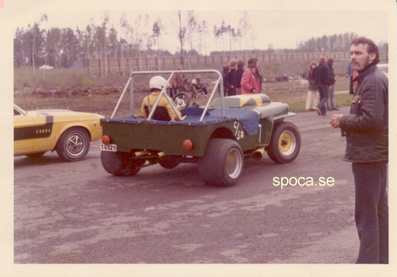 - Mantorp 1971, SHRA Stockholm anordnar klubb tävling på Mantorp. Ford Mustang och en gatkörd Jeep. Här syns tydligt att stripen sluttat uppåt.