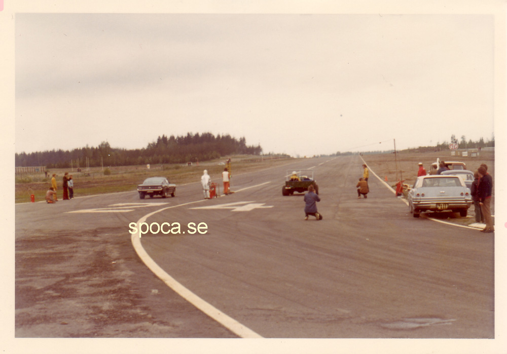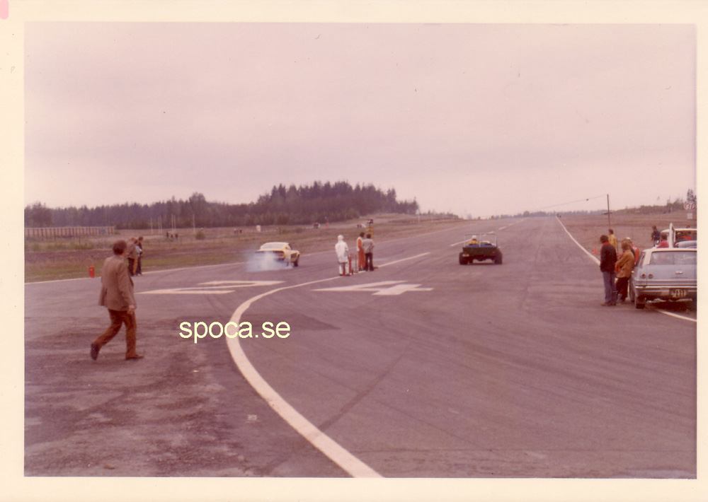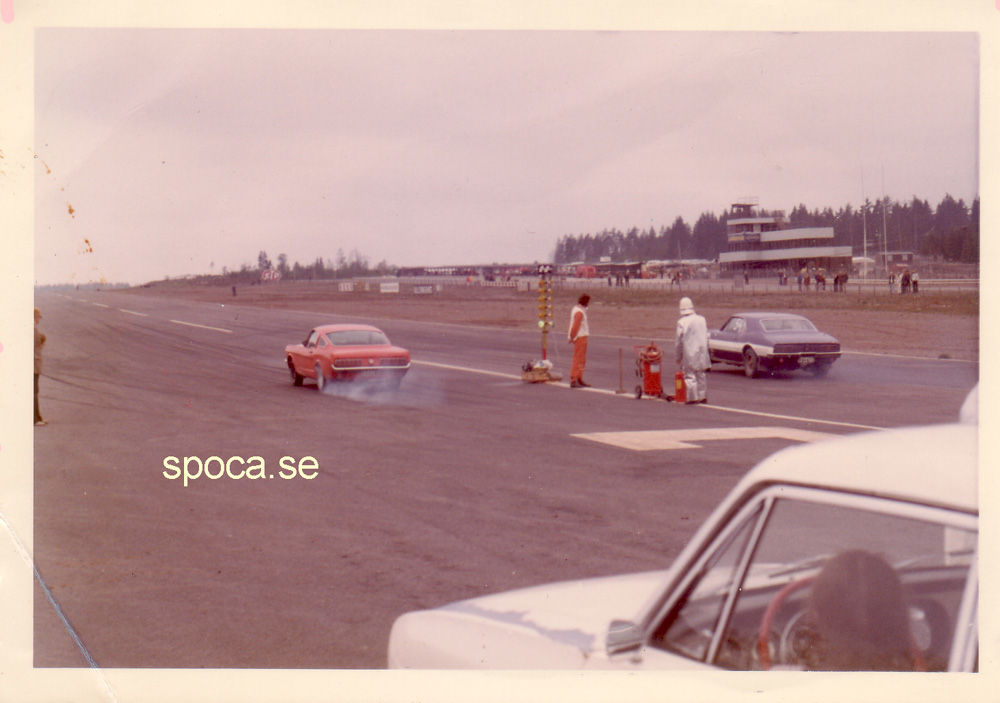 - Mantorp 1972, Dragracing, vad öde det ser ut. Ford Mustang och Jeepen som är reggad för gatkörning.