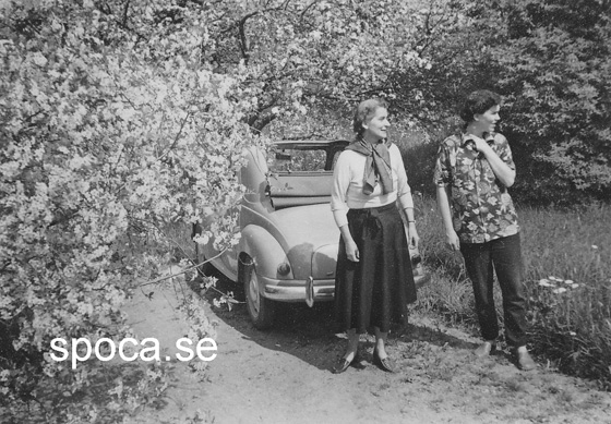 - Morföräldrarna besöker dotter med familj på det hyrda fritidsstället. Klädseln är enligt modet 1954, fint väder den här dagen, soltaket på Fiat Topolinon är nedfällt.