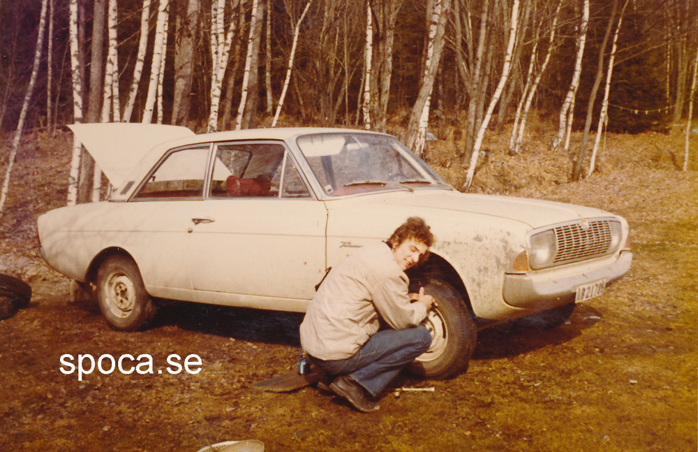 - Äntligen våren är i antågande och sommarhjulen kan monteras. Bilen är en Ford Taunus 17M från 1966 som köptes ny för dryga 14000 kronor.