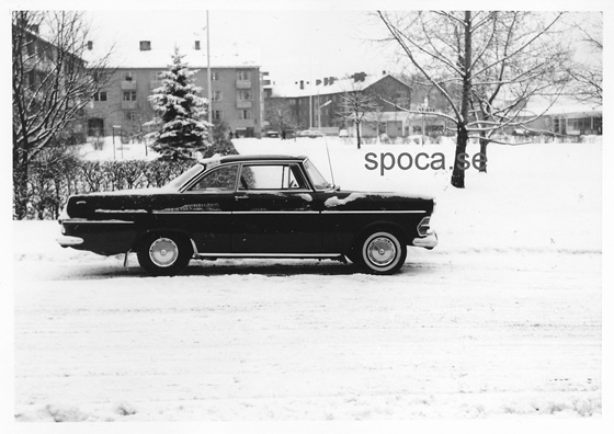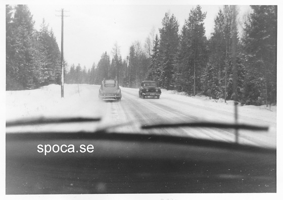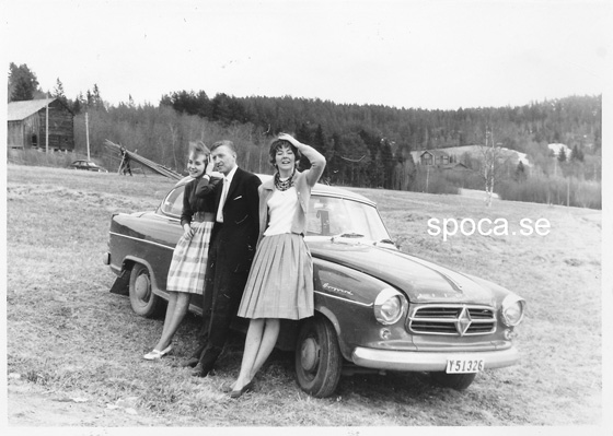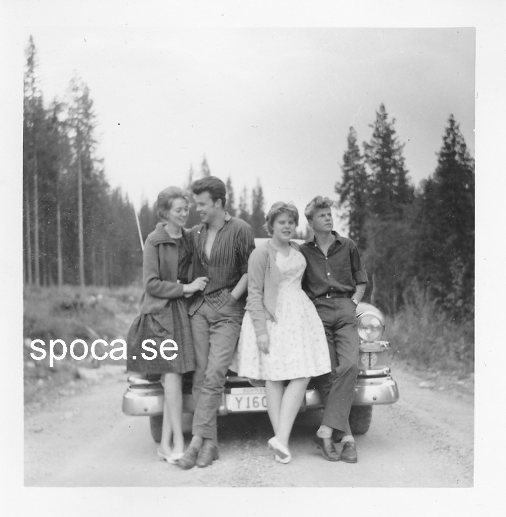 - Blivande svärfars nya bil, Borgward Isabella, som vi på nåder fick låna någon gång. Vi är här på väg till min kusin i Indal. Några år senare ordnar jag en raggarträff där uppe, i ett torp som ligger långt inne i skogen. Jag bjöd in några kompisar som det var ordning på, men tyvärr så spred sig ryktet. Det har aldrig varit så många jänkare där som då.