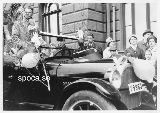 - På väg till Söderhamn i kompisens farsas sprillans nya Volvo PV.