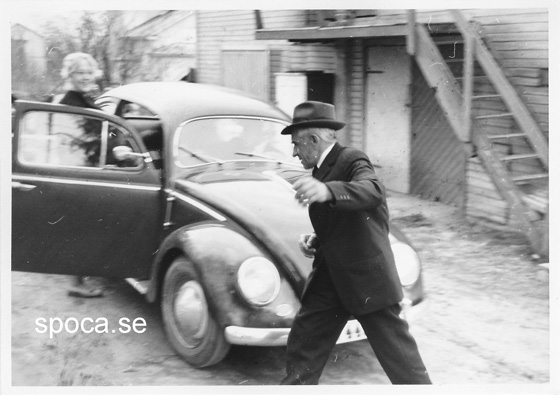 - Fullfart till bilen. Morbror rundar VW 1200.