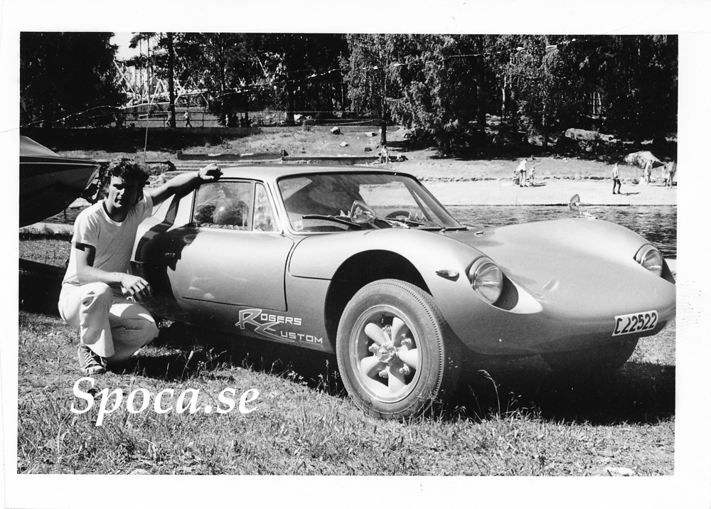 Det här är första sportvagnen jag byggde på VW bottenplatta. Skalet, karossen köpte vi nere i Horn i Småland. Dan Werbin och två killar hade tagit fram modellen och formarna till den här bilen. Jag köpte ett skal i glasfiber, efter mycket jobb blev det en bil.