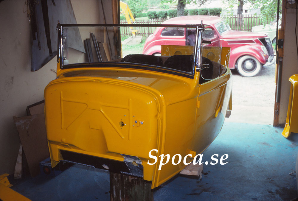 - Karossen klar och ska senare lackeras röd. Karl-Ola Englund bakom ratten.