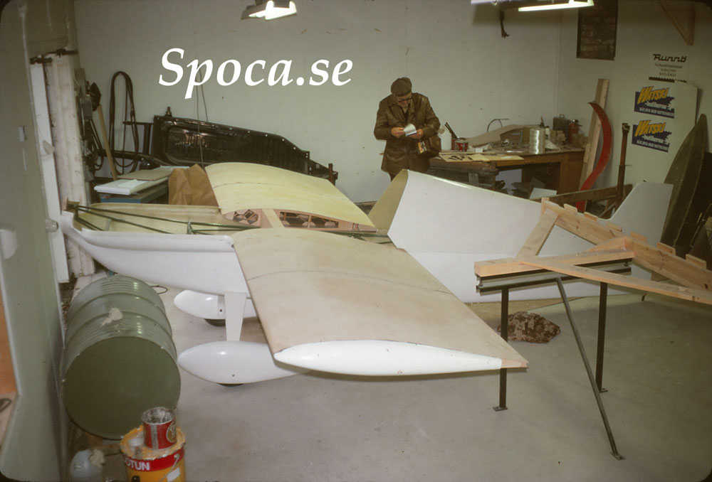 - Cassutt 3M, jag köpte ritningarna från Amerika. Var sugen på att bygga ett flygplan. Längst bort skymtar en bottenplatta till VW bubblan.