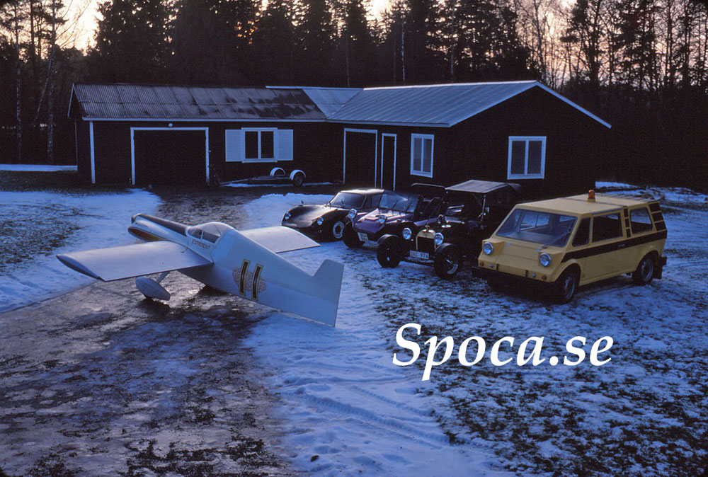Några av Karl-Ola Englunds byggen T-Ford Roadster 1915, två sportbilar baserade på VW - bottenplatta, Beach Buggys, T Fordar, Ford Coupe 5W 1931.